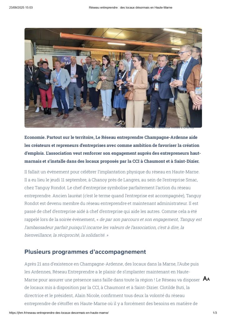 Réseau entreprendre : des locaux désormais en Haute-Marne !