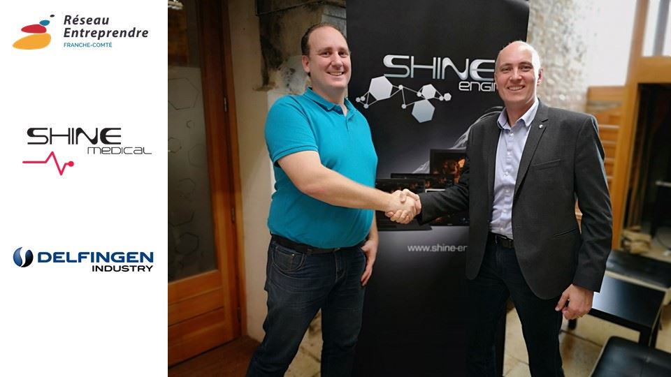 Gérald Streit Administrateur de Réseau Entreprendre Franche-Comté et Président de Delfingen, lance officiellement l’accompagnement de notre lauréat Sylvain Grosdemouge, dans son projet de développement de la société Shine Medical, spécialisée dans la conception de logiciels liés au domaine médical.