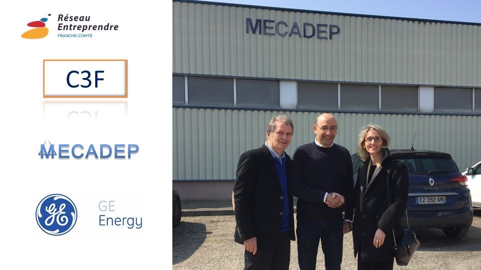 Jean-Pierre CHEVASSU, Dirigeant de la SARL C3F et Catherine LETANG, DRH General Electric, lancent officiellement l’accompagnement de notre lauréat Tarek BOUZID, repreneur de la société MECADEP située à ESSERT (90), spécialisée dans l’usinage de précision de pièces de grandes dimensions.