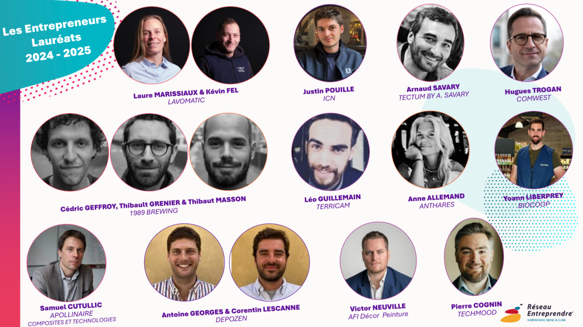 Membres, lauréats et partenaires de l’association étaient réunis autour des 16 nouveaux lauréats de la promo 2024-2025 accompagnés par Réseau Entreprendre Normandie Seine & Eure :