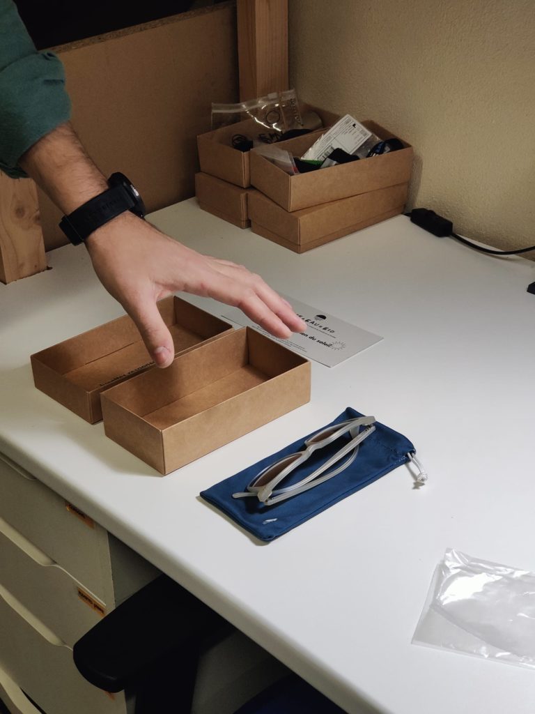 5. Les finitions et envoi : Quelques ajustements et finitions sont réalisés. Les lunettes sont ensuite soigneusement enveloppées avec leur pochette en cuir et leur lingette microfibre. Elles sont prêtes à vous retrouver.