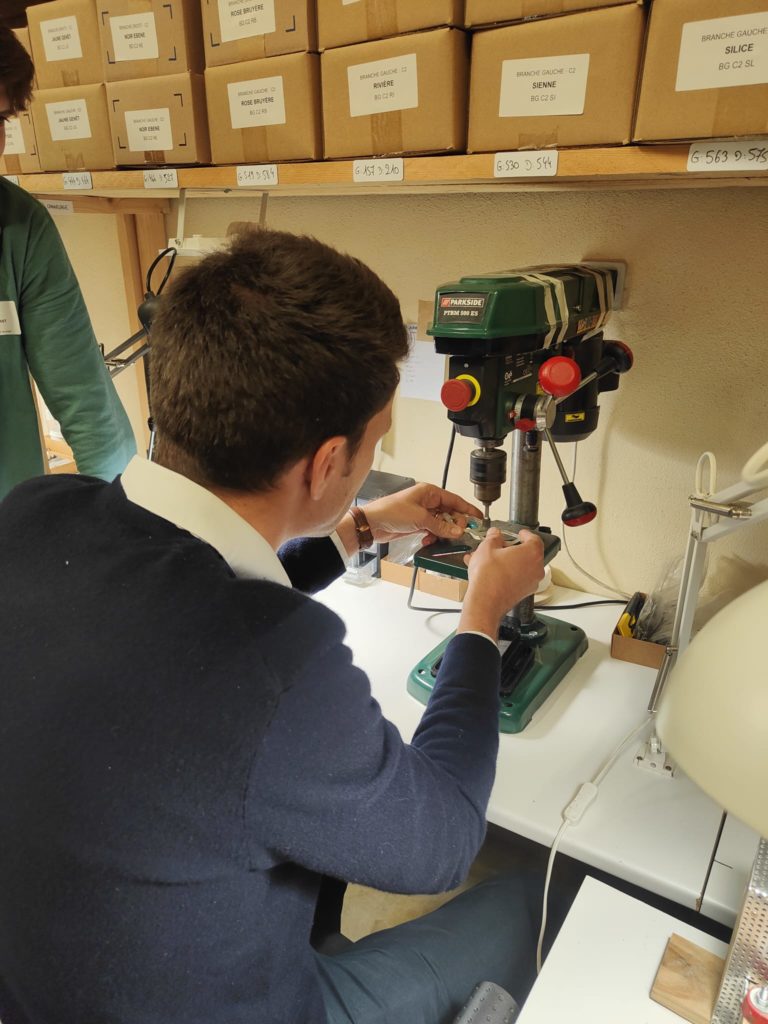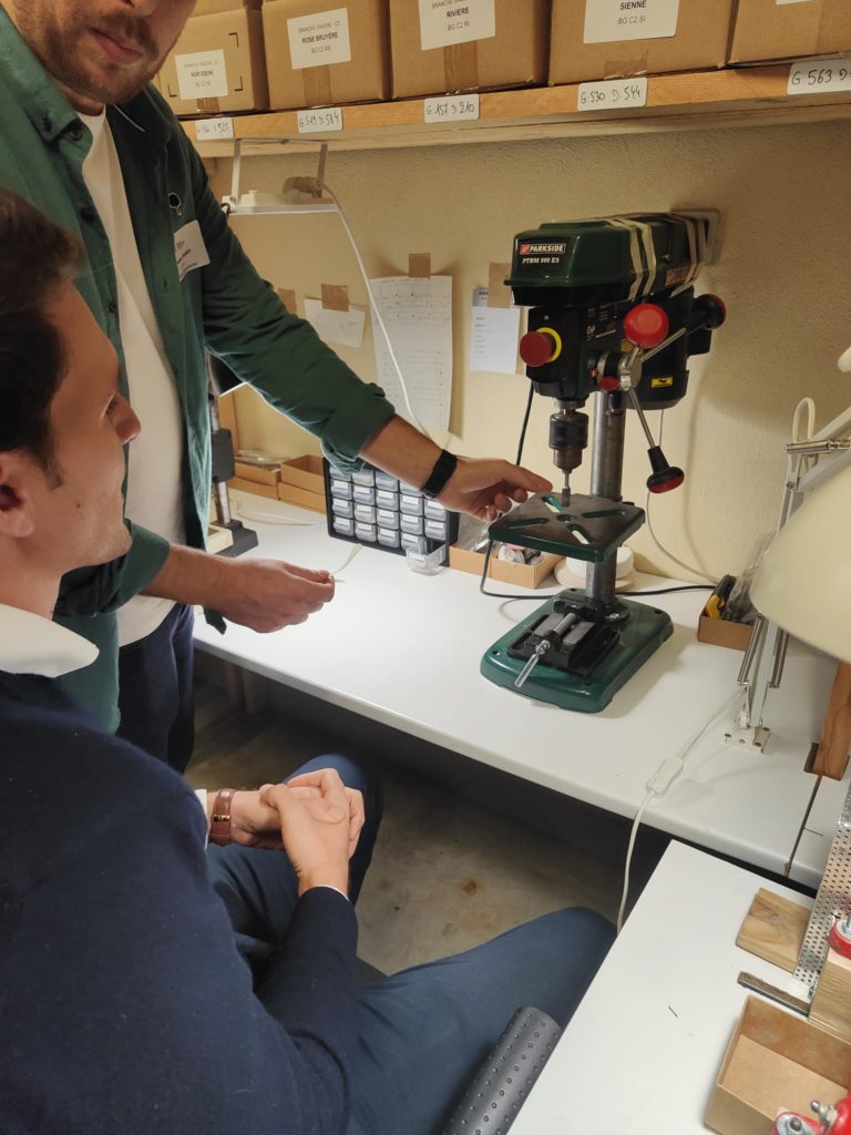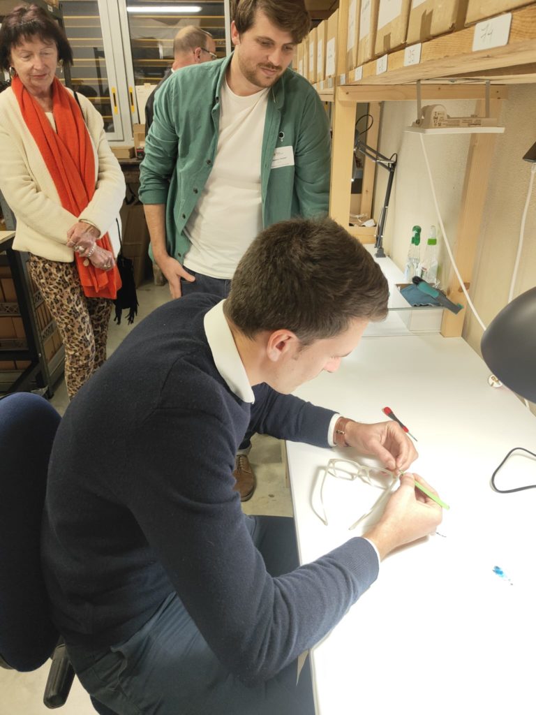 La soirée a débuté par une visite captivante des ateliers d’EIO, où Quentin nous a dévoilé chaque étape minutieuse de la fabrication d’une paire de lunettes. Saviez-vous qu’un véritable chef-d’œuvre nécessite plusieurs phases, toutes exécutées avec une précision digne de l’artisanat d’excellence ?