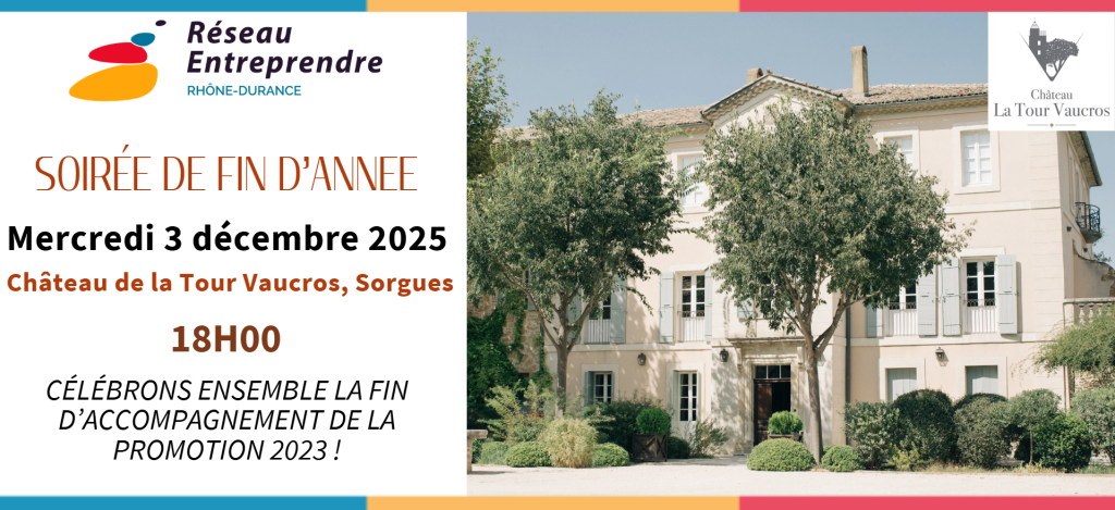 📢 Nous vous donnons rendez-vous (dirigeants et chefs d’entreprise) le mercredi 3 décembre à 18h dans le cadre exceptionnel du Château de la Tour Vaucros à Sorgues, pour célébrer ensemble la fin d’accompagnement des lauréats de la promotion 2023